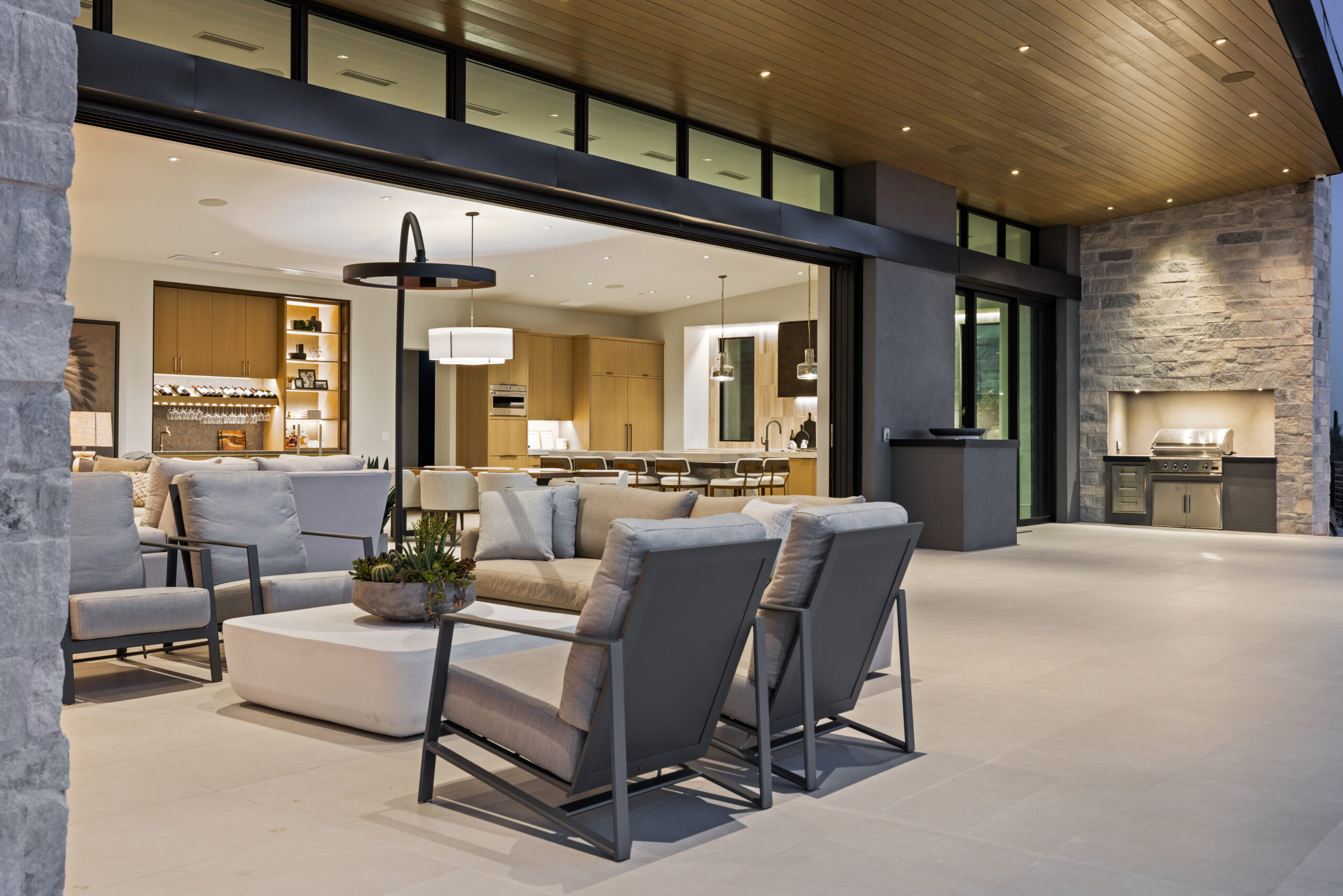 “We really wanted to bring the outside in and maximize space,” explains Bradley Leavitt, founder of AFT Construction. “The clients are here throughout fall, winter, and spring and they entertain frequently and spend a lot of time outside.”