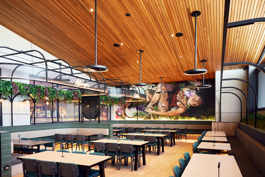 Kelman concludes that, “in the area with the operable roof, a heater was needed that could provide a heat that would work in Melbourne’s winter and that could be positioned on structural beams and angled towards patrons – this was why the Tungsten Electric was chosen.”