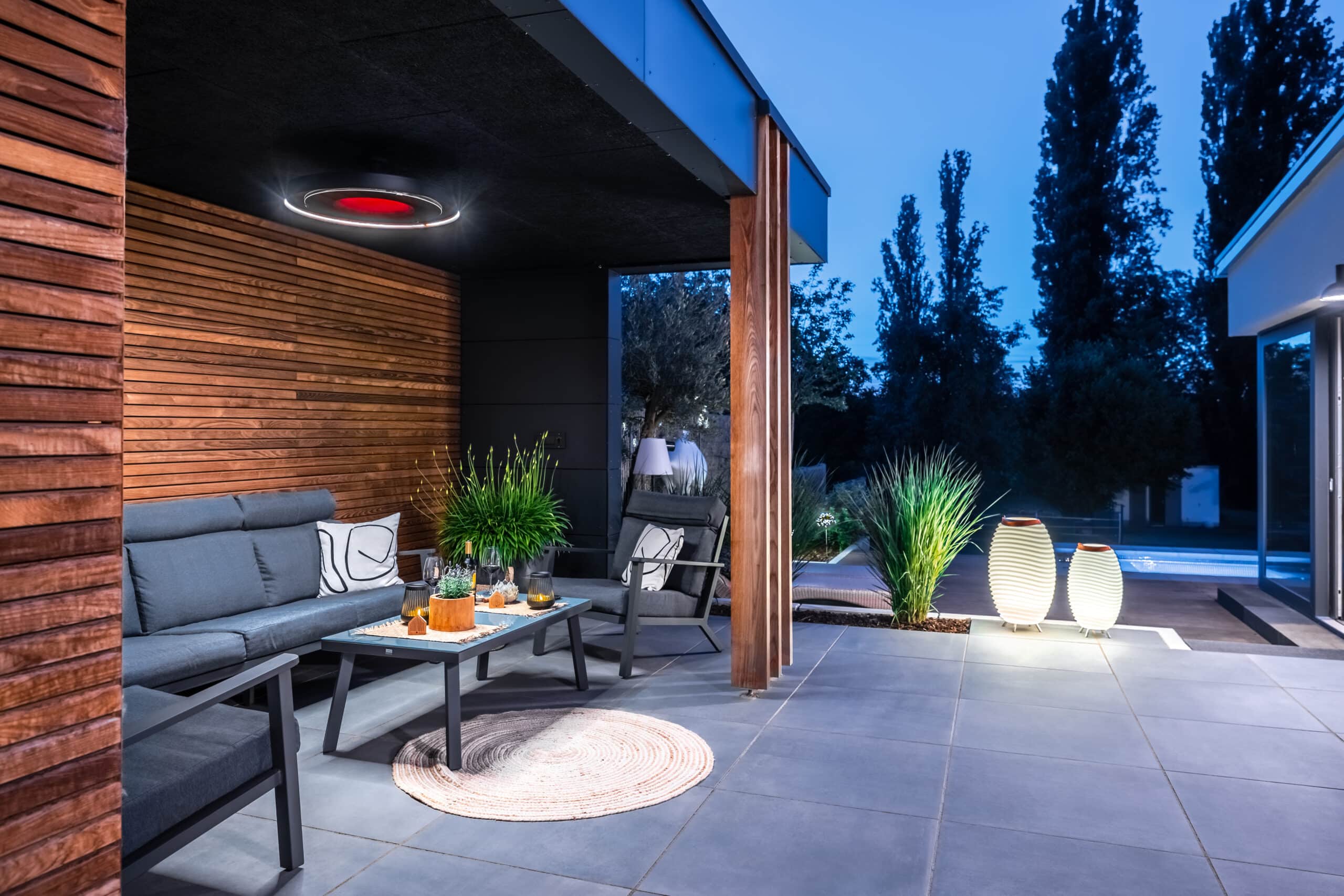 With prior knowledge of Bromic’s Eclipse Collection, Regina recognized that it would be the ideal outdoor heating solution for her space. “The heater also functions as a light source, providing warmth and creating a pleasant atmosphere in outdoor areas, especially when drying off after a swim. It perfectly enhances the ambiance of the garden, offering adjustable light intensity and heat levels with the Eclipse Dimmer Controller.”