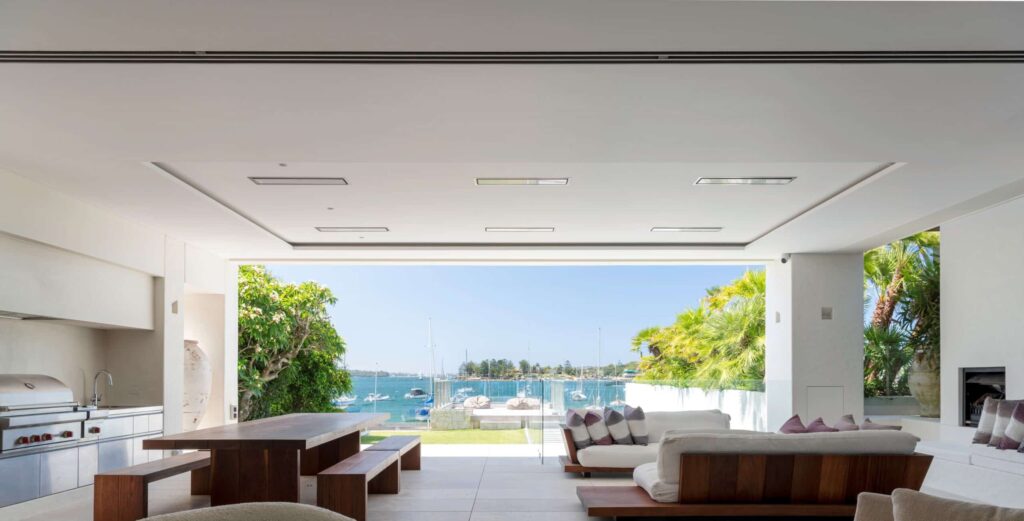 Adding an outdoor fire feature such as a firepit or fireplace might seem like the right solution to add heat while removing the clunky outdoor heater, but this method of heat is not as effective in providing the warmth and comfort needed to be able to utilize the space year-round.